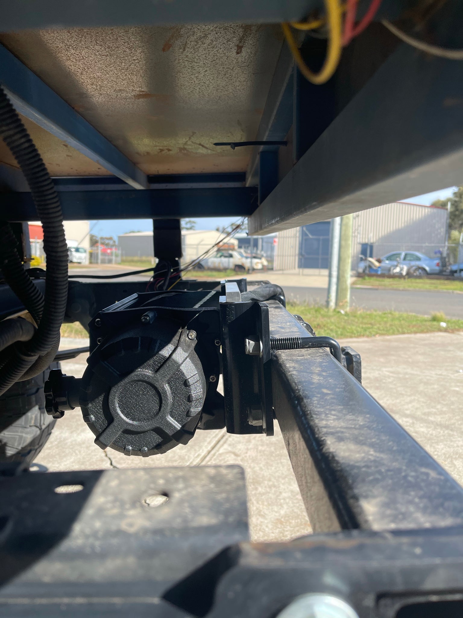 Rear winch cradle that mounts through your tow hitch from the rear Also allowing you to still use the factory towball tongue. Please note there is potential that some factory towball tongues and most after market ones will need to be trimmed down to allow the winch to seat best.